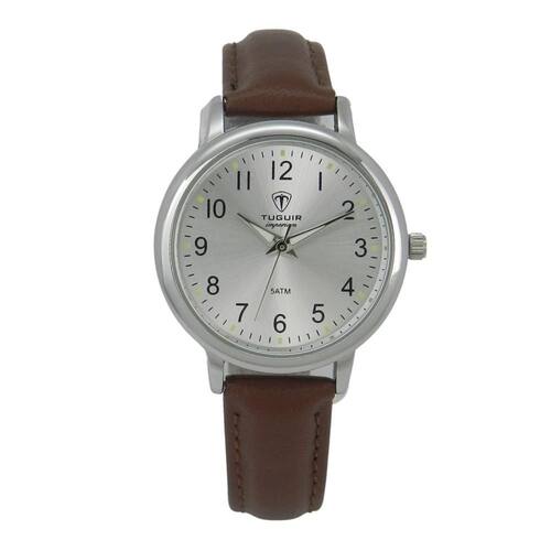 Características: com caixa em Metal e pulseira em Couro Ecológico Marrom