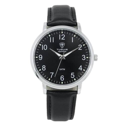 Características: com caixa em Metal e pulseira em Couro Ecológico Preto