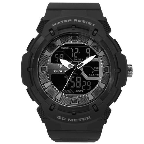 Características: com caixa em Policarbonato Preta e pulseira em Poliuretano Preta
