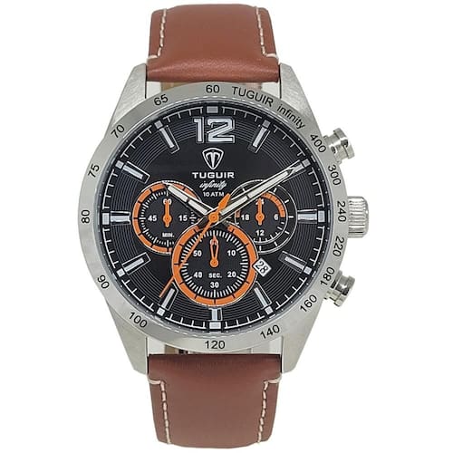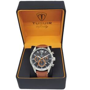 Características: com caixa em Aço e pulseira em Couro autêntico Marrom