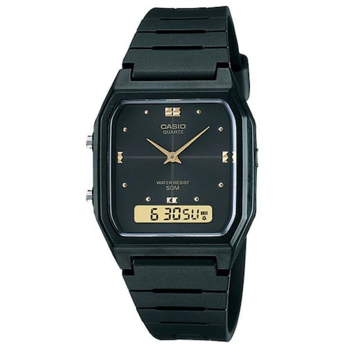 Relógio Unissex Casio Vintage Aw-48He 1Av Preto AnadigiO Relógio é um dos acessórios mais presentes em todas as fases da nossa vida, mesmo com inúmeros dispositivos modernos que mostram as horas, o clássico relógio para pulso não perdeu seu charme e é uma ótima opção para complementar o visual. O Relógio Unissex Casio Vintage Aw-48He 1Av Preto Anadigi é perfeito para uso pessoal ou para presentear alguém especial em uma data comemorativa, sendo um presente único, de ótimo gosto, elegância e muita praticidade.Produzido com materiais resistentes e de qualidade, a peça reúne sofisticação e estilo em um único item. A escolha perfeita para quem gosta de ter um acessório que complemente o look em qualquer ocasião. Características:Relógio Casio Modelo Aw-48he 1avdfUnissex AnadigiLinha: VintageTamanho: MédioFunções DigitalAnalógicoCalendário dia do mês e dia da semanaCronômetro progressivoAlarmeFormato 12/24 hsCaracterísticasBateriaBotões: SimplesTampa posterior: ParafusadaResistência à água: 50MMostrador PretoMaterial da caixa: Resina PretaMaterial da pulseira: Borracha pretaMedidasDiâmetro da caixa: 3cmEspessura da caixa: 0,8cmAcompanhaManual Nota FiscalEmbalagem CasioGarantia de 1 ano