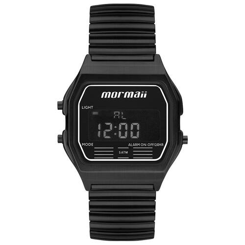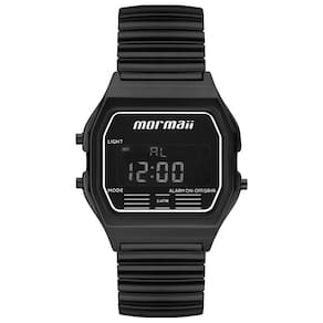 Modelo ideal para compor looks estilosos e vintages, esse relógio da Mormaii conta com caixa de metal 35mm, pulseira de aço em molinha e display negativo. Digital, ele é preto fosco, tem função calendário, alarme e resistência à água.