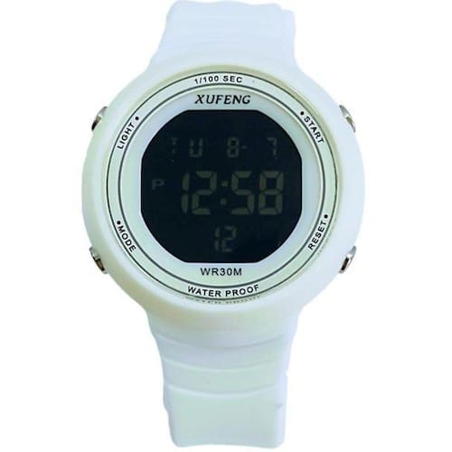 Relógio Unissex Digital Prova Dágua Estudante Universitário Relógio Digital Modelo Exclusivo a Prova Dágua Elegante Relógio Ideal para estudantes , adolecentes , seu visor Digital deixando o modelo mais descolado e bonito. Marca: XufengModelo: Exclusivo DigitalCor da Pulseira: BrancoCor do Fundo: PretoMaterial da Caixa: Aço revestido de borrachaMateria da Correia: BorrachaMedidas da Ciaxa: 35mmMedidas da Pulseira: 230mmA Prova Dágua : Sim até 5 metrosDigital: SimVisor: Fundo PretoTipo de Fecho: AjustavélPeso: 65g Funções:Hora , Minuto, SegundosData - Dia da SemanaCronometroAlarmeFundo Preto com Luz deixando os Numeros Azul Acompanha: 1- Relógio 1- Caixa
