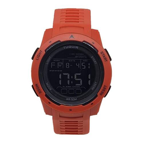 Relógio Unissex Relógio Tuguir Digital TG30397 Vermelho Relógio Unissex Relógio Tuguir Digital TG30397 Vermelho Marca: Tuguir Categoria: Digital Analógico: Não Digital: Sim 1 Horário Despertador: Sim Mostra o Dia da Semana: Sim Mostra o Dia do Mês: Sim Cronômetro: Sim Luz: Sim Cor da Iluminação: Azul Resistente à Água: 5 ATM Pode ser Utilizado para nadar no raso, por pouco tempo submerso - Respingos: Sim - Chuva: Sim - Lavar Carro: Sim - Lavar Louça: Sim - Natação: Sim - Mergulho: Não Característica do Vidro: Acrílico Tipo de Fecho: Fivela Cor da Caixa: Vermelho Material da Caixa: Plástico Formato da Caixa: Redondo Diâmetro da Caixa: 45,00 mm Espessura da Caixa: 16,00 mm Cor da Pulseira: Vermelho Material da Pulseira: Borracha Largura da Pulseira: 22,00 mm Comprimento Máximo da Pulseira: 250,00 mm Alimentação: Bateria Interna Peso Líquido: 0,050 Kg Modelo: TG30397 Cor Predominante: Vermelho : 12 Meses Conteúdo da Embalagem: 01 Relógio 01 Embalagem 01 Termo de Ean: 7891368316314