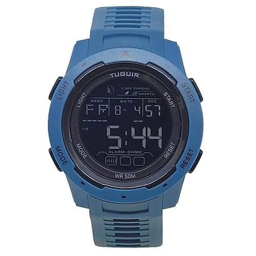 Relógio Unissex Relógio Tuguir Digital TG30399 Azul Relógio Unissex Relógio Tuguir Digital TG30399 Azul Marca: Tuguir Categoria: Digital Analógico: Não Digital: Sim 1 Horário Despertador: Sim Mostra o Dia da Semana: Sim Mostra o Dia do Mês: Sim Cronômetro: Sim Luz: Sim Cor da Iluminação: Azul Resistente à Água: 5 ATM Pode ser Utilizado para nadar no raso, por pouco tempo submerso - Respingos: Sim - Chuva: Sim - Lavar Carro: Sim - Lavar Louça: Sim - Natação: Sim - Mergulho: Não Característica do Vidro: Acrílico Tipo de Fecho: Dobrável Cor da Caixa: Azul Material da Caixa: Plástico Formato da Caixa: Redondo Diâmetro da Caixa: 45,00 mm Espessura da Caixa: 16,00 mm Cor da Pulseira: Azul Material da Pulseira: Borracha Largura da Pulseira: 22,00 mm Comprimento Máximo da Pulseira: 250,00 mm Alimentação: Bateria Interna Peso Líquido: 0,050 Kg Modelo: TG30399 Cor Predominante: Azul : 12 Meses Conteúdo da Embalagem: 01 Relógio 01 Embalagem 01 Termo de