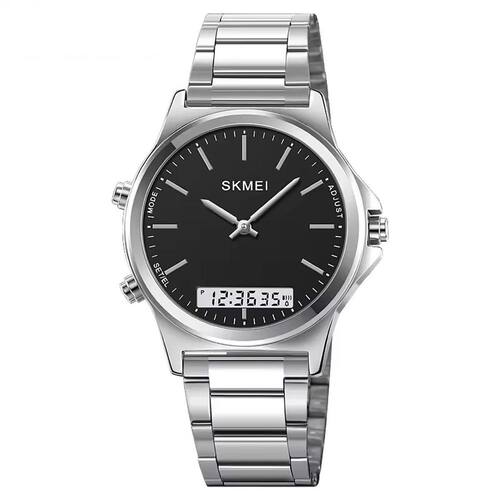 Marca: Skmei Categoria: AnaDigi Analógico: Sim 1 Horário Ponteiros Fluorescentes: Não Digital: Sim 1 Horário Calendário: Sim Despertador: Sim Mostra o Dia da Semana: Sim Mostra o Dia do Mês: Sim Cronômetro: Sim Contador Regressivo: Não Luz: Sim Cor da Iluminação: verde Resistente à Água: 3 ATM Resiste a imersões breves - Respingos: Sim - Chuva: Sim - Lavar Carro: Sim - Lavar Louça: Sim - Natação: Não - Mergulho: Não Característica do Vidro: Cristal Mineral Tipo de Fecho: Dobrável com Botão Cor da Caixa: Prata Material da Caixa: Metal Banho IP Formato da Caixa: Redondo Diâmetro da Caixa: 38,00 mm Espessura da Caixa: 10,00 mm Cor da Pulseira: Prata Material da Pulseira: Metal Largura da Pulseira: 18,00 mm Comprimento Máximo da Pulseira: 215,00 mm Alimentação: Bateria Interna Peso Líquido: 0,080 Kg Modelo: 2120 Cor Predominante: Prata Garantia: 12 Meses
