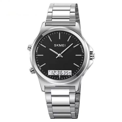 Relógio Unissex Skmei AnaDigi 2120 Prata Relógio Unissex Skmei AnaDigi 2120 Prata Marca: Skmei Categoria: AnaDigi Analógico: Sim 1 Horário Ponteiros Fluorescentes: Não Digital: Sim 1 Horário Calendário: Sim Despertador: Sim Mostra o Dia da Semana: Sim Mostra o Dia do Mês: Sim Cronômetro: Sim Contador Regressivo: Não Luz: Sim Cor da Iluminação: verde Resistente à Água: 3 ATM Resiste a imersões breves - Respingos: Sim - Chuva: Sim - Lavar Carro: Sim - Lavar Louça: Sim - Natação: Não - Mergulho: Não Característica do Vidro: Cristal Mineral Tipo de Fecho: Dobrável com Botão Cor da Caixa: Prata Material da Caixa: Metal Banho IP Formato da Caixa: Redondo Diâmetro da Caixa: 38,00 mm Espessura da Caixa: 10,00 mm Cor da Pulseira: Prata Material da Pulseira: Metal Largura da Pulseira: 18,00 mm Comprimento Máximo da Pulseira: 215,00 mm Alimentação: Bateria Interna Peso Líquido: 0,080 Kg Modelo: 2120 Cor Predominante: Prata : 12 Meses Conteúdo da Embalagem: 01 Relógio 01 Embalagem 01 Termo de Marca: Não Informado