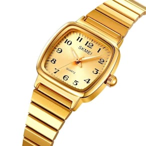 Marca: Skmei Categoria: Analógico Analógico: Sim 1 Horário Ponteiros Fluorescentes: Não Digital: Não Calendário: Não Despertador: Não Mostra o Dia da Semana: Não Mostra o Dia do Mês: Não Cronômetro: Não Contador Regressivo: Não Luz: Não Resistente à Água: 3 ATM Resiste a imersões breves - Respingos: Sim - Chuva: Sim - Lavar Carro: Sim - Lavar Louça: Sim - Natação: Não - Mergulho: Não Característica do Vidro: Cristal Mineral Tipo de Fecho: Gancho Cor da Caixa: Dourado Material da Caixa: Metal Banho IP Formato da Caixa: Quadrado Comprimento da Caixa: 26,00 mm Largura da Caixa: 24,50 mm Espessura da Caixa: 8,00 mm Cor da Pulseira: Dourado Material da Pulseira: Metal Largura da Pulseira: 10,00 mm Comprimento Máximo da Pulseira: 180,00 mm Alimentação: Bateria Interna Peso Líquido: 0,040 Kg Modelo: 2292 Cor Predominante: Dourado Garantia: 12 Meses