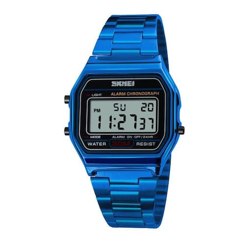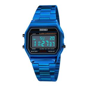 Relógio Unissex Skmei Digital 1123 - Azul Relógio Unissex Skmei Digital 1123 - Azul Marca: Skmei Categoria: Digital Analógico: Não Digital: Sim 1 Horário Calendário: Sim Despertador: Sim Mostra o Dia da Semana: Sim Mostra o Dia do Mês: Sim Cronômetro: Sim Contador Regressivo: Não Luz: Sim Cor da Iluminação: Resistente à Água: 3 ATM Resiste a imersões breves - Respingos: Sim - Chuva: Sim - Lavar Carro: Sim - Lavar Louça: Sim - Natação: Não - Mergulho: Não Característica do Vidro: Cristal Mineral Tipo de Fecho: Dobrável com Botão e Trava Cor da Caixa: Azul Material da Caixa: Metal Alloy Formato da Caixa: Quadrado Comprimento da Caixa: 33,00 mm Largura da Caixa: 36,00 mm Espessura da Caixa: 9,60 mm Cor da Pulseira: Azul Material da Pulseira: Metal Largura da Pulseira: 14,70 mm Comprimento Máximo da Pulseira: 200,00 mm Alimentação: Bateria Interna Peso Líquido: 0,060 Kg Modelo: 1123 Cor Predominante: Azul Garantia: 12 Meses