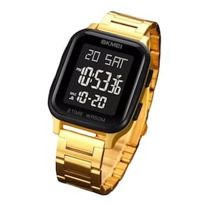 Relógio Unissex Skmei Digital 1859 Dourado e Preto Relógio Unissex Skmei Digital 1859 Dourado e Preto Marca: Skmei Categoria: Digital Analógico: Não Digital: Sim 1 Horário Calendário: Sim Despertador: Sim Mostra o Dia da Semana: Sim Mostra o Dia do Mês: Sim Cronômetro: Sim Contador Regressivo: Sim Luz: Sim Cor da Iluminação: Verde Resistente à Água: 5 ATM Pode ser Utilizado para nadar no raso, por pouco tempo submerso - Respingos: Sim - Chuva: Sim - Lavar Carro: Sim - Lavar Louça: Sim - Natação: Sim - Mergulho: Não Característica do Vidro: Cristal Mineral Tipo de Fecho: Dobrável com Botão Cor da Caixa: Dourado Material da Caixa: Plástico Formato da Caixa: Quadrado Comprimento da Caixa: 42,00 mm Largura da Caixa: 37,00 mm Espessura da Caixa: 12,00 mm Cor da Pulseira: Dourado Material da Pulseira: Aço Largura da Pulseira: 20,00 mm Comprimento Máximo da Pulseira: 260,00 mm Alimentação: Bateria Interna Peso Líquido: 0,080 Kg Modelo: 1859 Cor Predominante: Dourado Cor Diferencial: Preto : 12 Meses Conteúdo da Embalagem: 01 Relógio 01 Embalagem 01 Termo de Ean: 7891368320298