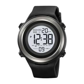 Relógio Unissex Skmei Digital 2265 Preto Relógio Unissex Skmei Digital 2265 Preto Marca: Skmei Categoria: Digital ógico: Não Digital: Sim 2 Horário Calendário: Sim Despertador: Sim Mostra o Dia da Semana: Sim Mostra o Dia do Mês: Sim Cronômetro: Sim Contador Regressivo: Sim Luz: Sim Cor da Iluminação: Verde Resistente à Água: 5 ATM Pode ser para nadar no raso, por pouco tempo submerso - Respingos: Sim - Chuva: Sim - Lavar Carro: Sim - Lavar Louça: Sim - Natação: Sim - Mergulho: Não Característica do Vidro: Acrílico Tipo de Fecho: Fivela Cor da Caixa: Preto Material da Caixa: Plástico Formato da Caixa: Redondo Diâmetro da Caixa: 48,00 mm Espessura da Caixa: 15,00 mm Cor da Pulseira: Preto Material da Pulseira: Borracha Largura da Pulseira: 24,00 mm Comprimento Máximo da Pulseira: 260,00 mm Alimentação: Bateria Interna Peso Líquido: 0,063 Kg Modelo: 2265 Cor Predominante: Preto : 12 Meses Conteúdo da Embalagem: 01 Relógio 01 Embalagem 01 Termo de Marca: Não Informado
