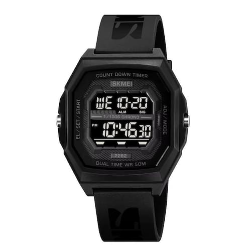 Relógio Unissex Skmei Digital 2282 Preto Relógio Unissex Skmei Digital 2282 Preto Marca: Skmei Categoria: Digital Analógico: Não Digital: Sim 2 Horário Calendário: Sim Despertador: Sim Mostra o Dia da Semana: Sim Mostra o Dia do Mês: Sim Cronômetro: Sim Contador Regressivo: Sim Luz: Sim Cor da Iluminação: Verde Resistente à Água: 5 ATM Pode ser Utilizado para nadar no raso, por pouco tempo submerso - Respingos: Sim - Chuva: Sim - Lavar Carro: Sim - Lavar Louça: Sim - Natação: Sim - Mergulho: Não Característica do Vidro: Acrílico Tipo de Fecho: Fivela Cor da Caixa: Preto Material da Caixa: Plástico Formato da Caixa: Quadrado Comprimento da Caixa: 39,00 mm Largura da Caixa: 41,00 mm Espessura da Caixa: 11,00 mm Cor da Pulseira: Preto Material da Pulseira: Borracha Largura da Pulseira: 18,50 mm Comprimento Máximo da Pulseira: 240,00 mm Alimentação: Bateria Interna Peso Líquido: 0,037 Kg Modelo: 2282 Cor Predominante: Preto : 12 Meses Conteúdo da Embalagem: 01 Relógio 01 Embalagem 01 Termo de