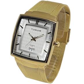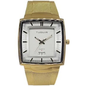 Relógio Unissex Tuguir Analógico TG30337 Dourado Relógio Unissex Tuguir Analógico TG30337 Dourado Marca: Tuguir Categoria: Analógico Analógico: Sim 1 Horário Ponteiros Fluorescentes: Não Digital: Não Calendário: Sim Despertador: Não Mostra o Dia da Semana: Não Mostra o Dia do Mês: Sim Cronômetro: Não Contador Regressivo: Não Luz: Não Resistente à Água: 3 ATM Resiste a imersões breves - Respingos: Sim - Chuva: Sim - Lavar Carro: Sim - Lavar Louça: Sim - Natação: Não - Mergulho: Não Característica do Vidro: Cristal Mineral Tipo de Fecho: Gancho Cor da Caixa: Dourado Material da Caixa: Metal Banho IP Formato da Caixa: Quadrado Comprimento da Caixa: 37,00 mm Largura da Caixa: 37,00 mm Espessura da Caixa: 10,00 mm Cor da Pulseira: Dourado Material da Pulseira: Aço Largura da Pulseira: 21,50 mm Comprimento Máximo da Pulseira: 220,00 mm Alimentação: Bateria Interna Peso Líquido: 0,080 Kg Modelo: TG30337 Cor Predominante: Dourado Garantia: 12 Meses