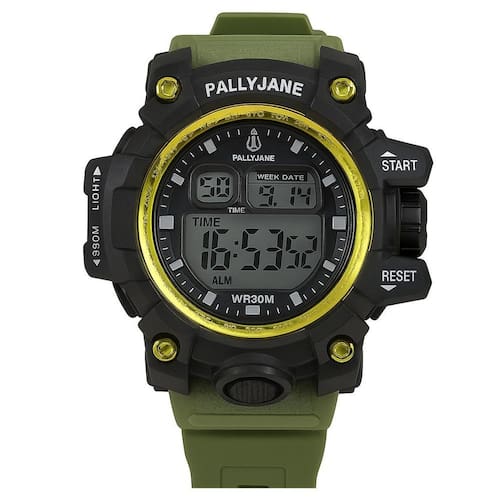 MARCA: Pallyjane Categoria: Digital Digital: Sim 1 Horário Calendário: Sim Cronômetro: Sim Luz: Sim Cor da Iluminação: Verde