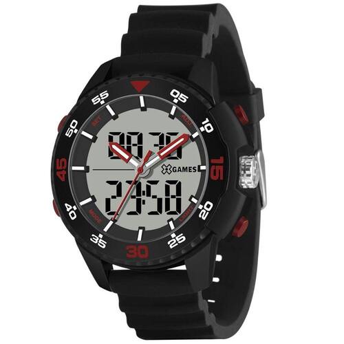 Relógio X Games Masculino Ref: Xmppa327 Bxpx Oversized Anadigi DESCRIÇÃO DO PRODUTO: Visor: LCD Funções: Anadigi, Calendário, Iluminação, Alarme, Timer, Cronógrafo, Dual Time Resistência à Água: 100m Diâmetro da Caixa: 51 mm Características: com caixa em Policarbonato e pulseira em Silicone Vidro: Acrílico Fundo Parafusado Alimentação do maquinário: Bateria Garantia de 1 Ano