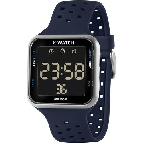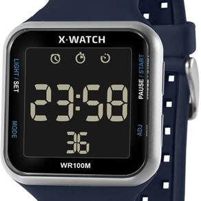 Marca: x-watch Gênero: masculino Movimento: digital Vidro: acrílico Funções: calendário, alarme, iluminação, cronógrafo, 12/24h Pressão: 100 m Características: com caixa policarbonato e pulseira silicone super confortável