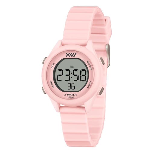 Características: com caixa em Resina Rosa e pulseira em Silicone Rosa