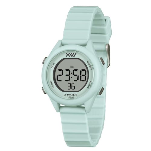 Características: com caixa em Resina Verde Água e pulseira em Silicone Verde Água