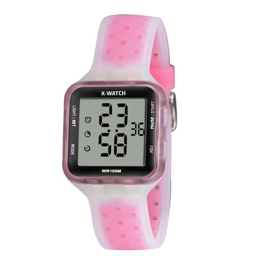 Características: com caixa em Resina Rosa Translúcida e pulseira em Silicone Translúcido com detalhes em rosa translúcido