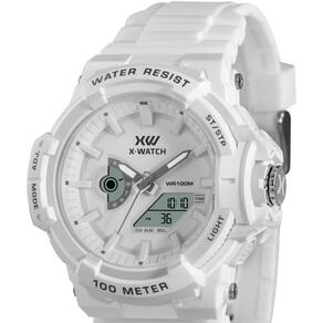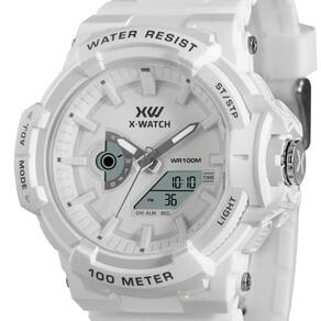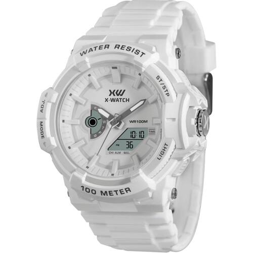 Marca: X-Watch Referência: XMPPA344 B1BX Gênero: Masculino Cor da Pulseira: Branco Cor da Caixa: Branca Material da Pulseira: Silicone Material da Caixa: Resina Tamanho da Caixa: Aproximadamente 51 mm de diâmetro Resistência à Água: 100 metros Tipo de Movimento: Anadigi (analógico + digital) Características do Vidro: Acrílico Marca: Não Informado