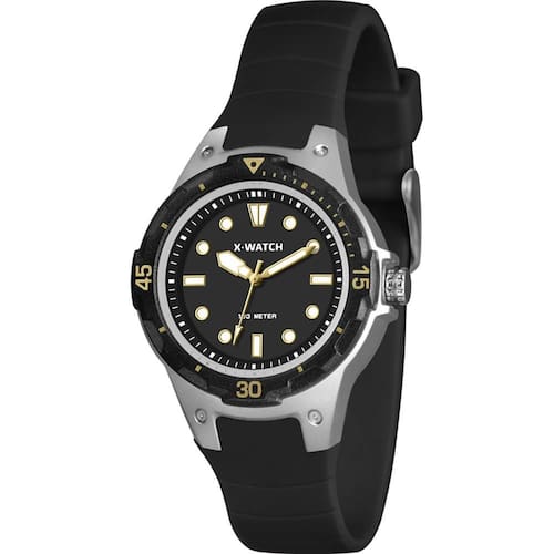 Características: com caixa em Resina prateada e pulseira em Silicone preta
