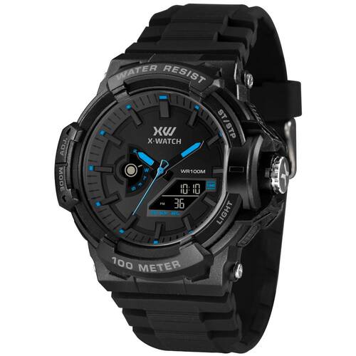 Características: com caixa em Resina Preta e pulseira em Silicone Preta