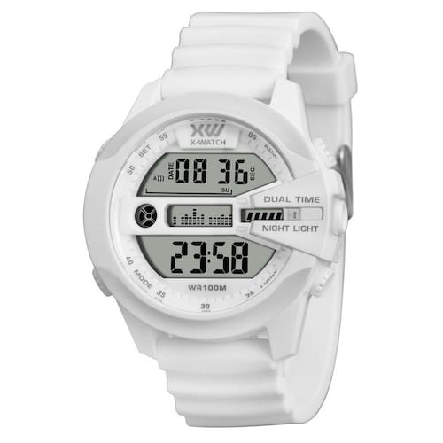 Relógio X-Watch Masculino Ref: Xmppd800 Bxbx Esportivo Digital DESCRIÇÃO DO PRODUTO: Funções: Digital, Iluminação, Calendário, Cronógrafo, Alarme, Timer, Dual Time Resistência à Água: 100m Diâmetro da Caixa: 48 mm Características: com caixa em Resina Branca e pulseira em Silicone Branca Vidro: acrílico Fundo Parafusado Alimentação do maquinário: Bateria Mostrador Branco com detalhes em preto de 1 Ano Marca: X-Watch