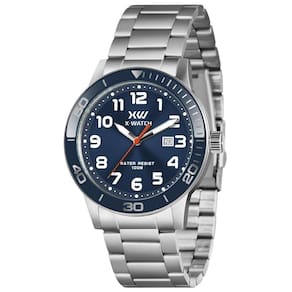 Relógio X-Watch Masculino Ref: Xmss1062 D2sx Casual Prateado DESCRIÇÃO DO PRODUTO: Funções: Analógico, Calendário Resistência à Água: 100m Diâmetro da Caixa: 44 mm Características: com caixa em Aço Inoxidável e pulseira em Aço inoxidável Vidro: Cristal Mineral Fundo Rosqueado Alimentação do maquinário: Bateria Mostrador Azul com todos os números Aro Fixo Azul de 1 Ano Marca: Não Informado
