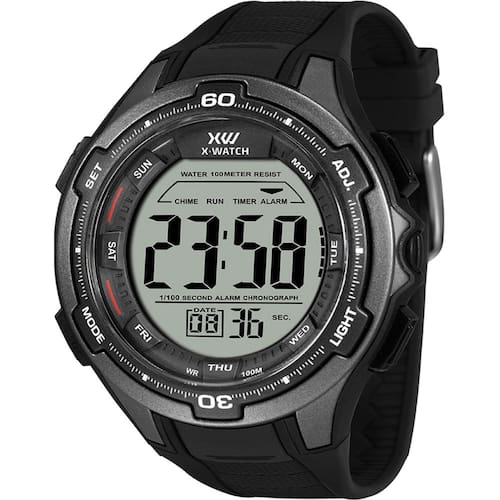 Funções: Digital, Cronógrafo, Alarme, Timer, Calendário, 12/24 h, Iluminação