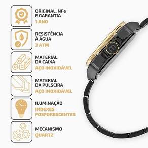 Marca: mondaine Referência: 32546GPMVHE4 Modelo: Espelhado Ficha Técnica: Formato da caixa: Quadrado Gênero: Masculino Cor: Preto Cor do mostrador: Preto Material da Pulseira: Aço inoxidável Material da Caixa: Aço inoxidável Mostrador: Analógico Mecanismo: Quartz Nivel de Resistência à Agua: 3 ATM 30 metros Material do Vidro: Cristal Mineral Tipo de Fecho: Dobrável com trava Tipo de Coroa: Botão padrão Fundo: Pressão Medidas: Pulseira Ajustável: Sim Tamanho da Caixa: 35,8 mm Altura da Caixa: 12,0 mm Dimensões da Caixa com a Coroa: 45,5 mm Largura da Pulseira: 19,9 mm Itens Inclusos: Funções: - 3 ponteiros - indexes fosforecentes - calendário dia do mês de 12 meses para todo o Brasil. Marca: Não Informado