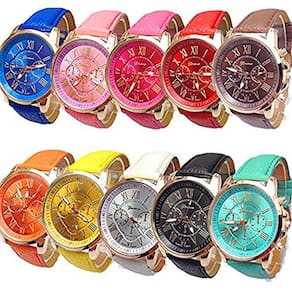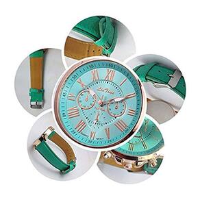 Descrição: Material da caixa: liga; Material da faixa: diâmetro da caixa do relógio de couro (cm): aproximadamente 3.9; Comprimento da banda (cm): 22.5 Movimento: quartzo; Display: analógico 3 pequenos sub-mostradores não podem funcionar, apenas para decoração, não funcional cor do relógio: Hortelã, preto, vermelho, rosa, marrom, laranja, amarelo, branco, azul, magenta