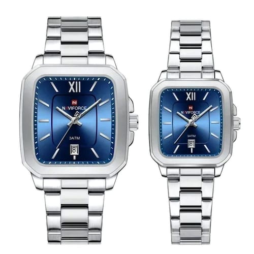 Este sofisticado conjunto de relógios de pulso analógicos é perfeito para casais que apreciam estilo, durabilidade e funcionalidade. Ambos os relógios, um para ele e outro para ela, apresentam um design moderno e elegante em aço inoxidável, garantindo resistência e sofisticação. O formato quadrado das caixas confere um toque contemporâneo e arrojado, ao mesmo tempo que proporciona conforto e praticidade no uso diário.