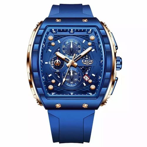 Relógios Masculino Lige 89148 Quadrado Esportivo Azul