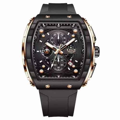 Relógios Masculino Lige 89148 Quadrado Esportivo Ouro