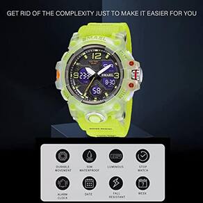 Relógios masculinos HOOSHU, analógicos, com tela dupla, esportivos, ao ar livre, impermeável, relógio de pulso militar, data, s multifuncionais, cronômetro de alarme LED (verde)