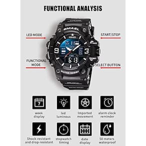 Relógios masculinos HOOSHU, esportes ao ar livre, impermeável, relógio militar analógico, data de exibição dupla, s multifuncionais, cronômetro de alarme LED para homens (cinza)
