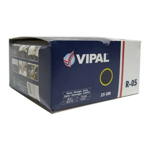 Remendo a frio r-05 100 mm - caixa 25 peças - vipal agricula Codigo: 392 Disponíveis em diferentes formatos e medidas, os remendos e plaquetas para câmaras de ar têm espessura extrafina e poder de expansão que acompanha a elasticidade da câmara, não criando calosidades. Utilizam a vulcanização química sistema a frio , que não submete as câmaras de ar ao calor, prolongando sua vida útil. Codigo: 392 Remendo a frio vipal r-05 Medida: 100 mm Caixa com 25 peças