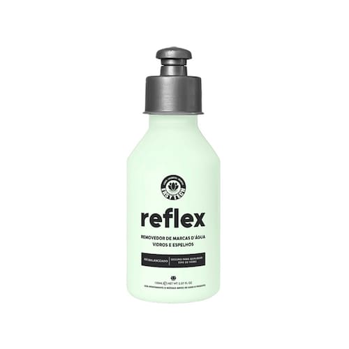 REFLEX é um removedor de manchas desenvolvido especialmente para vidros automotivos e residenciais, formulado para eliminar com eficiência marcas causadas por chuva ácida, minerais, água dura e contaminantes atmosféricos, devolvendo transparência e brilho à superfície.