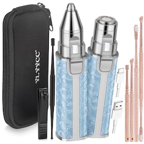 YLYYCC Removedor de pelos faciais para lábios, barbeador elétrico 2 em 1 e aparador de sobrancelhas, ferramenta de remoção de cera de ouvido com caixa de armazenamento, aparador de pelos de nariz azul recarregável para mulheres com luz LED integrada - Remoção de pelos confortável: nosso removedor de pelos feminino indolor 2 em 1 garante a remoção confortável e precisa do excesso de pelos sem qualquer sensação dolorosa de puxão e sensação de queimação, ideal para uso diário, garantindo uma remoção eficiente e suave do cabelo para uma aparência limpa e bem cuidada. - Alta qualidade: este modelador de sobrancelha e remoção de pelos faciais possui um motor potente e um design de rotação interna de 360°, equipado com um sistema de lâmina rotativa de borda dupla. Expandindo a área de contato, pode aparar rápida e completamente o excesso de pelos nas sobrancelhas, lábios superiores e inferiores, bochechas, queixo e pescoço, alcançando uma aparência instantaneamente limpa e limpa. - Ferramentas profissionais de remoção de cera de ouvido: o kit de limpeza de ouvido é feito de aço inoxidável, cada ferramenta de remoção de cera de ouvido é equipada com uma alça ergonômica e aderência antiderrapante projetada de acordo com princípios ergonômicos, diferentes colheres de ouvido são usadas juntas para remover de forma perfeita e eficaz e segura cera de ouvido acumulada oleosa ou seca. - Recarregável por USB: eliminando a necessidade de pilhas AA, este removedor de pelos elétrico recarregável para aparador de rosto e sobrancelha para mulheres com um cabo USB e bateria integrada para garantir energia suficiente a qualquer momento e em qualquer lugar, seu design perfeito juntamente com a luz LED integrada visa sem esforço cada cabelo, garantindo fácil remoção. - Companheiro de viagem compacto e portátil: este aparador de pelos do nariz está equipado com 1 bolsa de armazenamento, 1 aparador de pelos nasais, 1 cabeça de substituição para remoção de pelos faciais, 1 ferramenta de remoção de cera de ouvido, 1 escova limpa, 1 cortador de unhas, 1 cabo de carregamento USB, projetado para ser compacto e leve, perfeito para economizar espaço e peso. garantindo que você possa manter uma aparência limpa mesmo enquanto estiver em movimento.