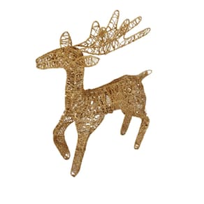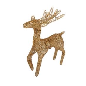 Rena decorativa de Natal estrutura arame revestida com fios dourados.