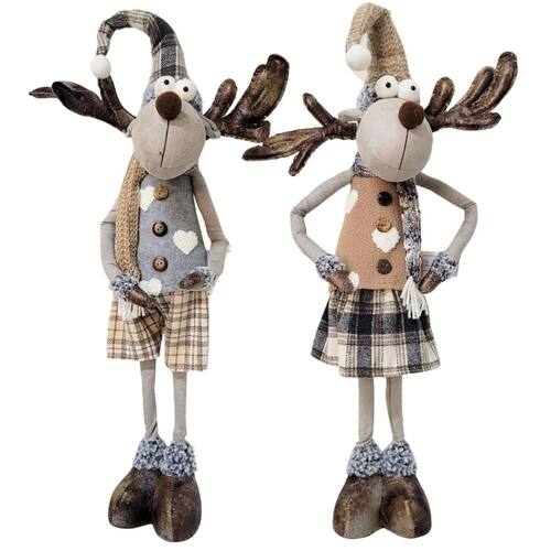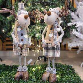Adicione charme e aconchego à sua decoração natalina com este adorável Casal de Bonecos Decorativos Rena Macho e Fêmea. Com 60cm de altura, ela veste uma saia e bermuda xadrez e um cachecol de crochê, trazendo um visual rústico nas cores marrom e cinza. Seus braços e gorrinho são maleáveis, permitindo personalizar a pose conforme sua decoração. Perfeito para decorar qualquer ambiente da casa, essa rena combina o estilo rústico com detalhes festivos, tornando-se uma peça encantadora para celebrar o espírito do Natal.