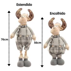 -01 Unidade Rena Decorativa Natalina Retrátil e Expansível – Pelúcia Luxo em Cinza e Bege, com Gorro e Cachecol de Crochê 76cm