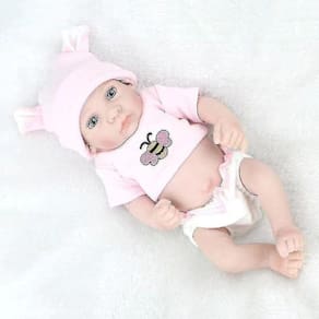 Marca: Abelha pequenaGênero: Boneca totalmente plástica, fêmeaTamanho: cerca de 26-28 cm quando deitado plano, Peso: A embalagem é de cerca de 500 gramas. Estrutura: Os membros podem se mover, o bebê pode sentar ou deitar, e pode entrar na água para acompanhar o bebê no banho, sem falar; Cabelo: Cabelos pintados à mãoOlhos: Olhos acrílicos, bonecas de olhos abertos, podem ser s como colecionáveis, brincar com bebês, etc. Roupa: Feito sob medida de acordo com o tamanho da boneca, transformando-se em um bebê, pode ser retirado