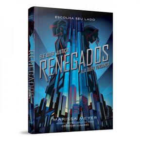 Os Renegados são um grupo de prodígios – humanos com habilidades extraordinárias – que emergiram das ruínas de uma sociedade colapsada. Foram eles que estabeleceram a paz onde, antes, o caos reinava. Eles continuaram sendo um símbolo de esperança e coragem para todos... exceto para os vilões que foram derrotados por eles. Nova, que faz parte do grupo dos Anarquistas, tem um motivo para odiar os Renegados, e está em uma missão em busca de vingança. Enquanto se aproxima de seu alvo, ela conhece Adrian, um garoto Renegado que acredita na justiça – e em Nova. Mas a lealdade de Nova está com os Anarquistas e há um vilão que tem o poder de acabar com os dois, e em tudo que acreditam. Renegados é a nova história de Marissa Meyer, autora bestseller #1 do New York Times da série Crônicas Lunares, que explora um mundo arriscado de aventura, paixão, perigos e traições. Acompanha porta marcador (quantidade limitada)