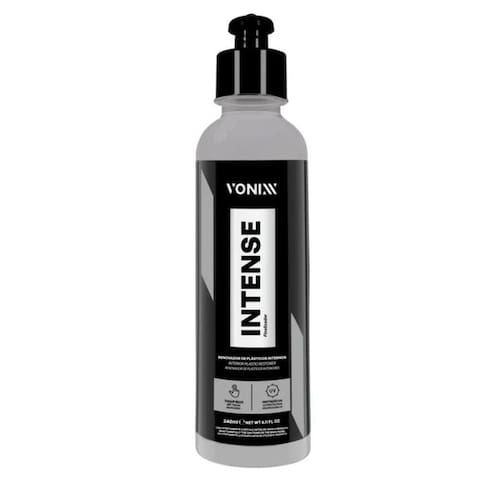 Intense é um renovador de plástico com proteção UV, cuja fórmula balanceada promove acabamento natural e toque seco, com durabilidade de 6 meses. O produto deve ser utilizado especificamente na parte interna do automóvel, em superfícies como vinil e plástico em geral.