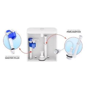 Entrada Master Flux Universal, indicado para todos os modelos de caixas acopladas Saída Air Touch Acionamento pneumático Acionador de ABS cromado com instalação universal (lateral, frontal e superior) Acompanha vedante e conjunto de fixação