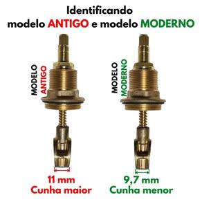 A cunha do modelo antigo é maior do que a do modelo moderno. Antes de efetuar a compra, é importante verificar as medidas da cunha.