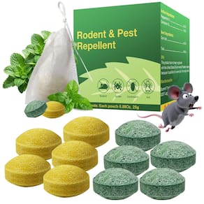 Repelente de rato, óleo de hortelã-pimenta repelente de ratos e esquilos, antipragas natural de longa duração para uso interno, externo, motores de carro, seguro para família e animais de estimação, (pacote com 80) - Ingredientes naturais de hortelã-pimenta: Feito com óleo de hortelã puro, emite um aroma que os ratos não gostam, repelindo-os efetivamente sem quaisquer aditivos químicos. - Seguro para crianças e animais de estimação: fórmula suave e não tóxica garante segurança para crianças, animais de estimação e seu ambiente doméstico. - Versátil para uso interno e externo: ideal para vários espaços, incluindo casas, carros, trailers, garagens, jardins e galpões, oferecendo proteção abrangente. - Proteção de longa duração: cada repelente oferece até 30 dias de proteção, reduzindo a necessidade de substituições frequentes e economizando tempo. - Fácil de usar: sem necessidade de configuração complexa; basta colocar em áreas com atividade de roedores para resultados rápidos e eficazes.