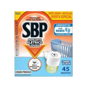 Repelente Elétrico Líquido SBP + 3 Refis SBP Para Repelente Elétrico Cheiro Suave 32,9ml