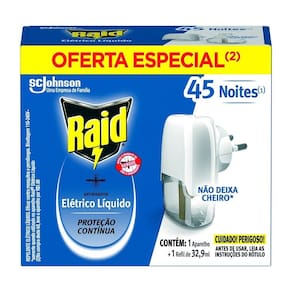 Repelente Elétrico Raid 45 Noites Aparelho + Refil Líquido 32,9ml